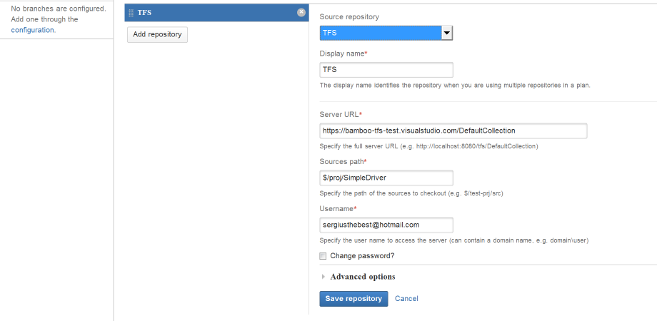 Plugin pozwala Atlassian Bamboo używać TFS jako żródło repozytorium i nie wymaga dodatkowego oprogramowania.